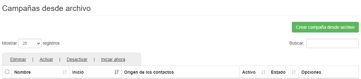 Cuando creas una campaña desde archivo, la campaña se crea con el estado 'Esperando leer archivo'. Hasta que el archivo no empiece a ser procesado para leer los contactos que contiene, la campaña permanecerá en ese estado.