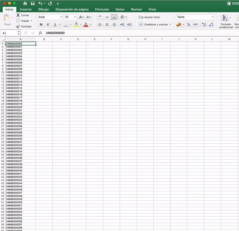 Númeroy escoge la categoríaTexto. - Guarda el archivo y vuelve a importarlo en nuestra plataforma.