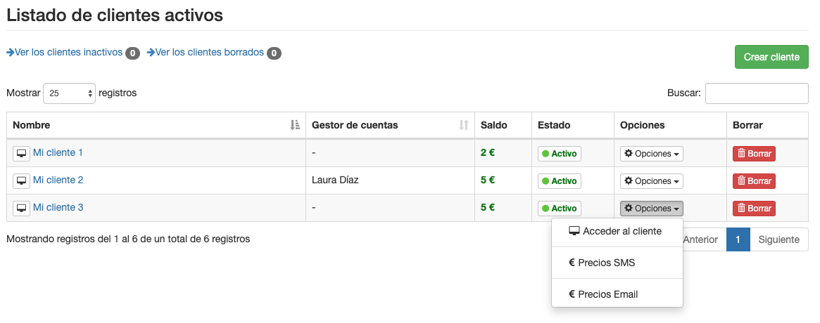 Si lo deseas, puedes crear nuevos clientes bajo tu cuenta