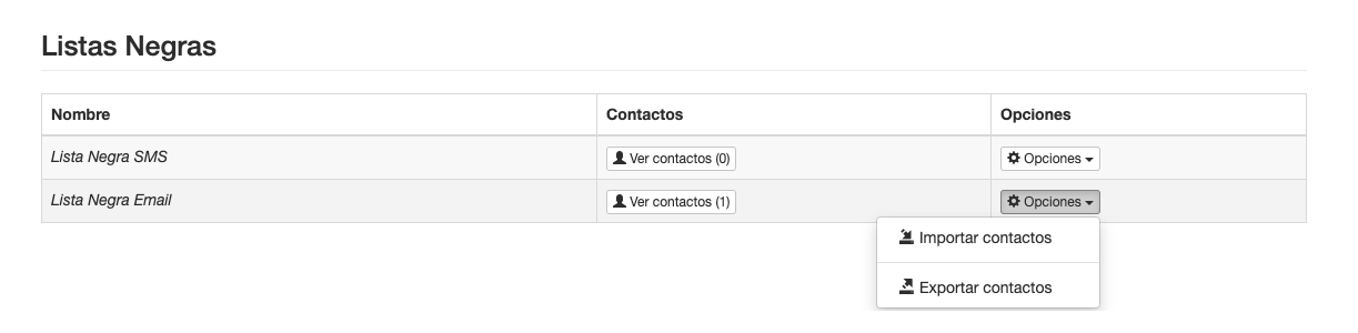 Las bajas a través de importaciones son las que se realizan a través de la herramienta de importar contactos sobre Lista Negra que elijas.