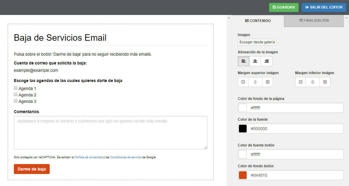 Utilizar el formulario de baja en tus envíos de email