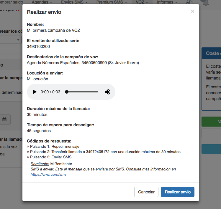 Solo se pueden realizar campañas de VOZ sobre números españoles, tanto fijos como móviles.