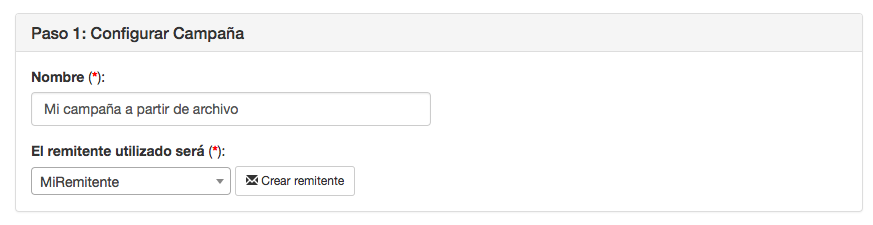 En este paso escogemos el Remitente SMS para el envío. También le asignamos un nombre a la campaña.