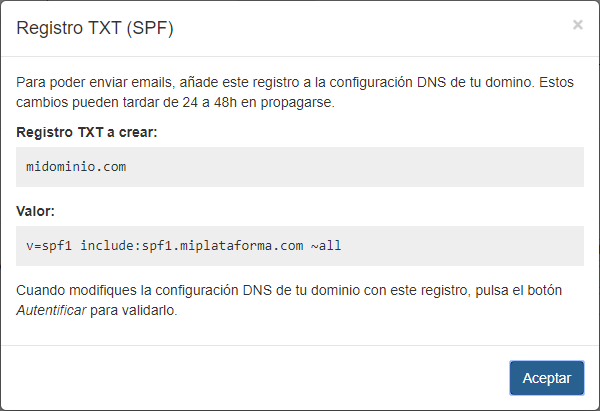 - Crear registro TXT para configurar el SPF