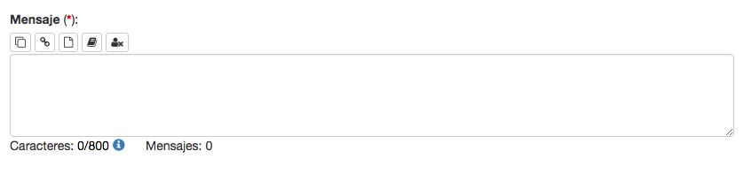 Conforme vayas escribiendo, el contador de caracteres contará el número de caracteres a enviar. Si utilizas campos personalizados, el valor del contador de caracteres no contiene el valor exacto, ya que por cada destinatario, la longitud del valor del campo personalizado puede ser diferente.